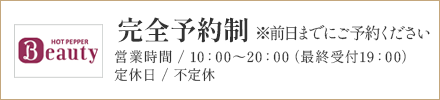 営業時間 | 10:00~20:00(最終受付は19:00) |